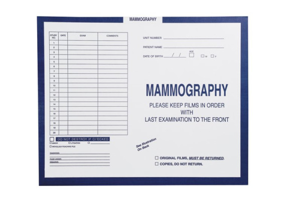 Mammography, Dark Blue #287 - Category Insert Jackets, System I, Open Top - 14-1/4