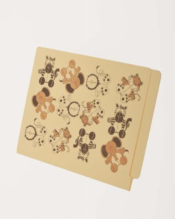11 pt Manila Folders, Full Cut 2-Ply End Tab, Letter Size, Fastener Pos #1 & #3, Printed with Animals (Box of 50)