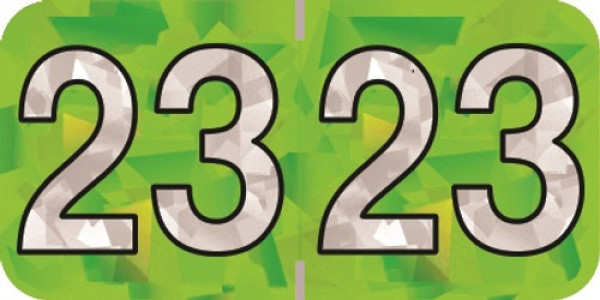 2023 Holographic Yearband Label - Lime Green - HLYM Series - Polylaminated -3/4" H x 1-1/2" W - 500/Roll