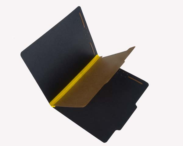 25 Pt. Fushion Black Pressboard Classification Folders, 2/5 Cut ROC Top Tab, Letter Size, 1 Divider, Yellow Tyvek (Box of 20)