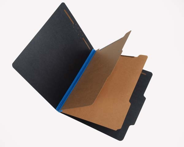25 Pt. Fushion Black Pressboard Classification Folders, 2/5 Cut ROC Top Tab, Letter Size, 2 Dividers, Blue tyvek (Box of 15)