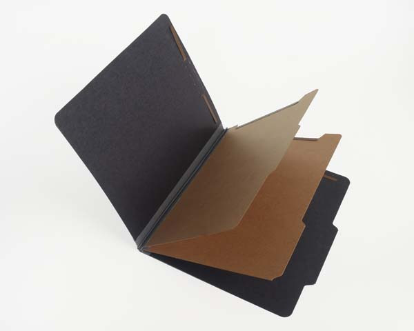 25 Pt. Fushion Black Pressboard Classification Folders, 2/5 Cut ROC Top Tab, Letter Size, 2 Dividers, Gray tyvek (Box of 15)