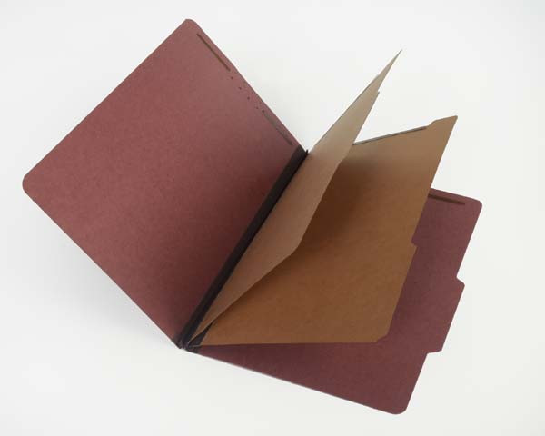 25 Pt. Pressboard Classification Folders, 2/5 Cut ROC Top Tab, Legal Size, 2 Dividers, Carnelian Red (Box of 15)