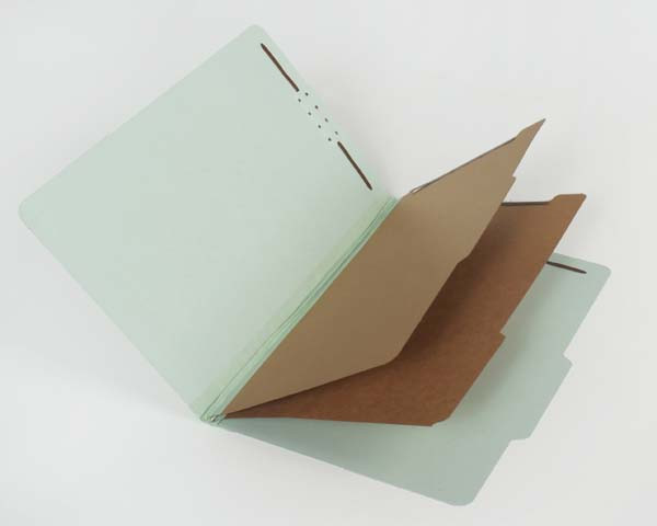 25 Pt. Pressboard Classification Folders, 2/5 Cut ROC Top Tab, Legal Size, 2 Dividers, Pale Green (Box of 15)