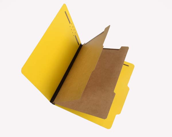 25 Pt. Pressboard Classification Folders, 2/5 Cut ROC Top Tab, Letter Size, 2 Dividers, Bright Yellow (Box of 15)
