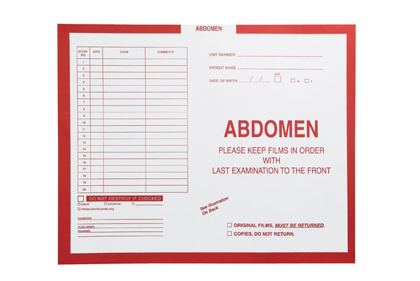 Abdomen, Red #185 - Category Insert Jackets, System II, Open Top - 14-1/4" x 17-1/2" (Carton of 250)