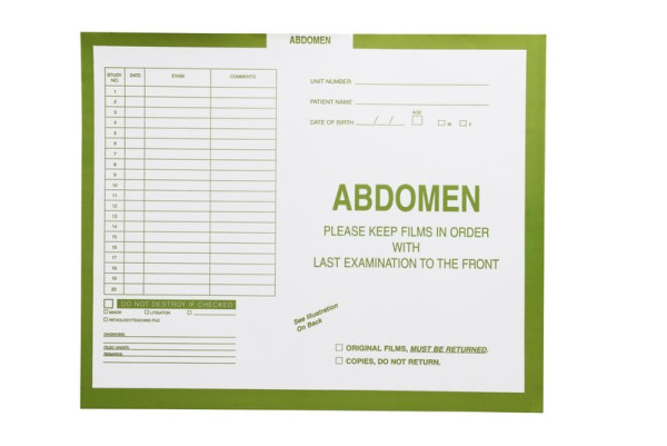 Abdomen, Yellow/Green #381 - Category Insert Jackets, System I, Open Top - 14-1/4" x 17-1/2" (Carton of 250)