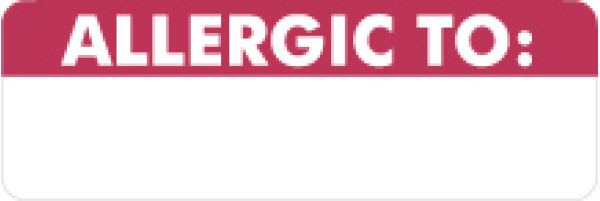 Allergy Warning Labels, ALLERGIC TO - Red/White, 3" X 1" (Roll of 250)