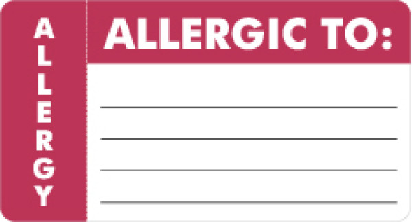 Allergy Warning Labels, ALLERGIC TO: - Red/White (Wrap Around), 3-1/4" X 1-3/4" (Roll of 250)