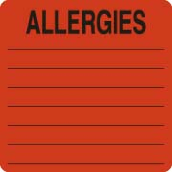 Allergy Warning Labels, ALLERGIES - Fl Red, 2-1/2" X 2-1/2" (Roll of 500)