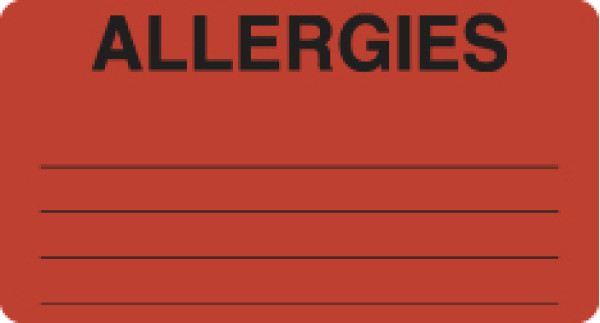 Allergy Warning Labels, ALLERGIES - Fl Red, 3-1/4" X 1-3/4" (Roll of 250)