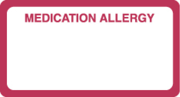 Allergy Warning Labels, MEDICATION ALLERGY - Red/White, 3-1/4" X 1-3/4" (Roll of 250)