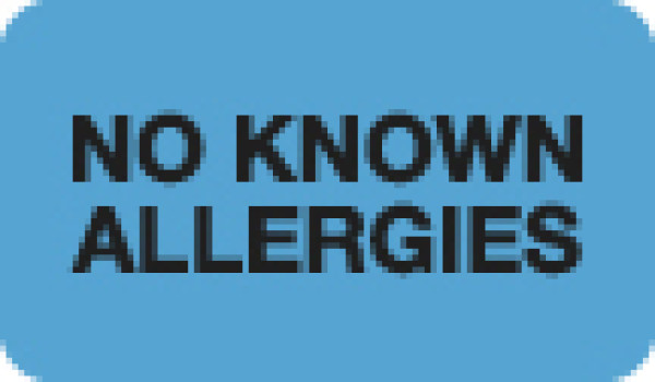 Allergy Warning Labels, NO KNOWN ALLERGIES - Lt Blue, 1-1/2" X 7/8" (Roll of 250)