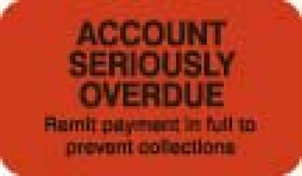 Billing Collection Labels, ACCOUNT SERIOUSLY OVERDUE - Fl Red, 1-1/2" X 7/8" (Roll of 250)