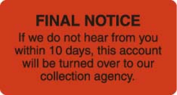 Billing Collection Labels, Fl Red - FINAL NOTICE, 3-1/4