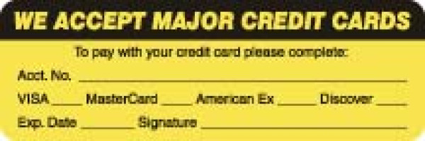 Billing Collection Labels, WE ACCEPT MAJOR CREDIT CARDS - Fl Chartreuse, 3" X 1" (Roll of 250)