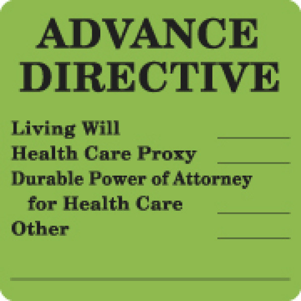 Chart Labels, ADVANCE DIRECTIVE - Fl Green, 2-1/2" X 2-1/2" (Roll of 390)
