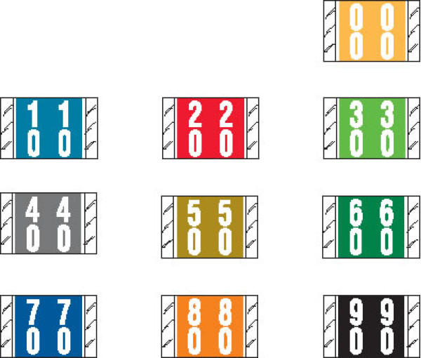 Col'R'Tab Compatible Double Digit Labels, Laminated Stock, 1" X 1-1/2", Starter Set - 10 Rolls of 500