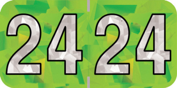 2024 Holographic Yearband Label - Lime Green - HLYM Series - Polylaminated -3/4" H X 1-1/2" W - 500/Roll