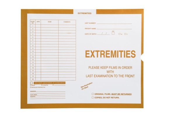Extremities, Yellow #109 - Category Insert Jackets, System I, Open Top - 14-1/4" x 17-1/2" (Carton of 250)