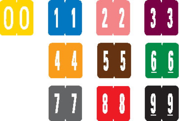 GBS Compatible Numeric Labels, Laminated Stock, 1-5/16" X 1-1/4", Starter Set - 10 Rolls of 500