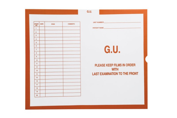 G.U. (Genito-Urinary), Orange #151 - Category Insert Jackets, System II, Open End - 14-1/4" x 17-1/2" (Carton of 250)