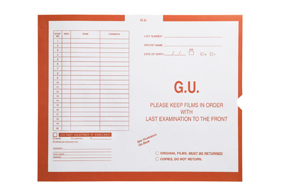G.U. (Genito-Urinary), Orange #165 - Category Insert Jackets, System I, Open End - 14-1/4" x 17-1/2" (Carton of 250)