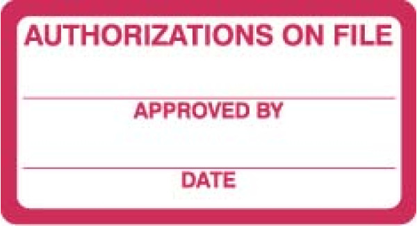 HIPAA Labels, Authorizations on File - Red/White, 3-1/4" X 1-1/4" (Roll of 250)