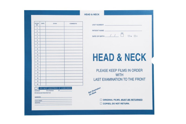 Head & Neck, Process Blue - Category Insert Jackets, System I, Open End - 14-1/4" x 17-1/2" (Carton of 250)
