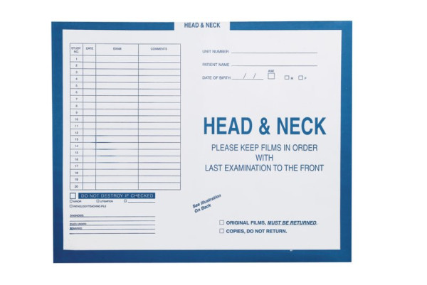 Head & Neck, Process Blue - Category Insert Jackets, System I, Open Top - 14-1/4" x 17-1/2" (Carton of 250)