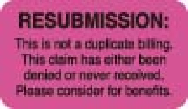 Insurance Collection Labels, RESUBMISSION - Fl Pink, 1-1/2" X 7/8" (Roll of 250)