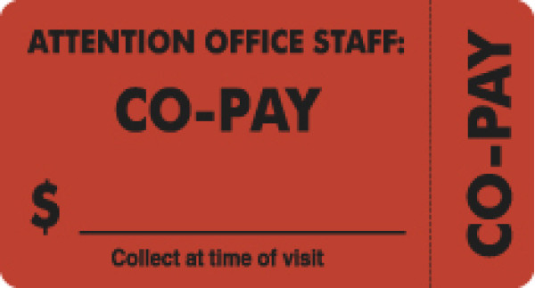 Insurance Labels, CO-PAY - Fl Red (Wrap-Around), 3-1/4" X 1-3/4" (Roll of 250)