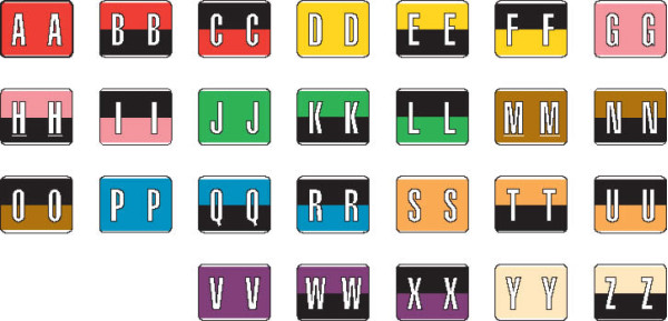 Kardex Compatible Alpha Labels, Laminated Stock, 1-1/4" X 1-19/32", Starter Set - 27 Rolls of 500