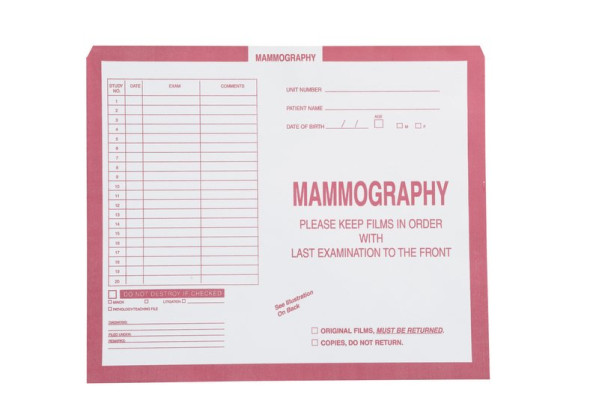 Mammography, Pink #190 - Category Insert Jackets, System II, Open Top - 10-1/2" x 12-1/2" (Carton of 500)