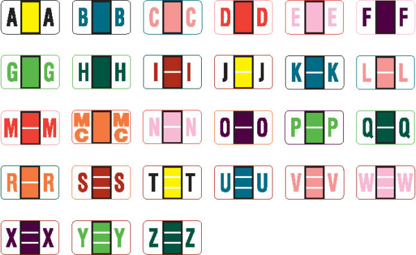 POS Compatible Alpha Labels, Laminated Stock, 15/16" X 1-5/8", Starter Set - 27 Rolls of 500