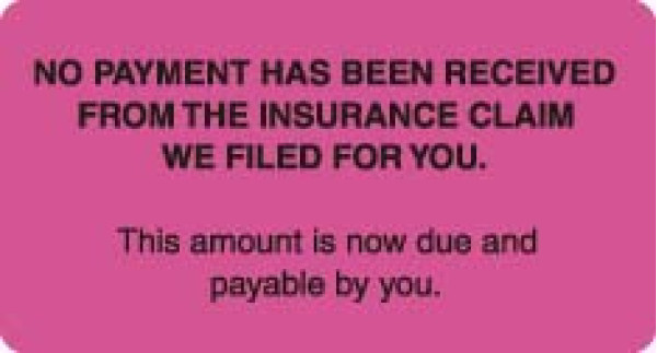 Patient Responsibility Labels, NO PAYMENT HAS BEEN... - Fl Pink, 3-1/4" X 1-3/4" (Roll of 250)
