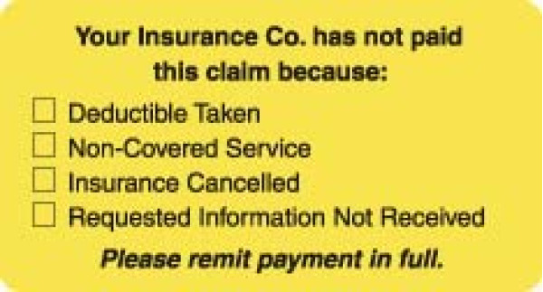 Patient Responsibility Labels, Your Insurance Co. Has Not Paid... - Fl Chartreuse, 3-1/4" X 1-3/4" (Roll of 250)