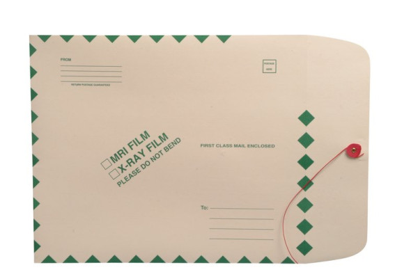 X-Ray Film Mailers, 11 pt Manila, 11" x 13", Green Diamond Border, String and Button Closure (Carton of 100)