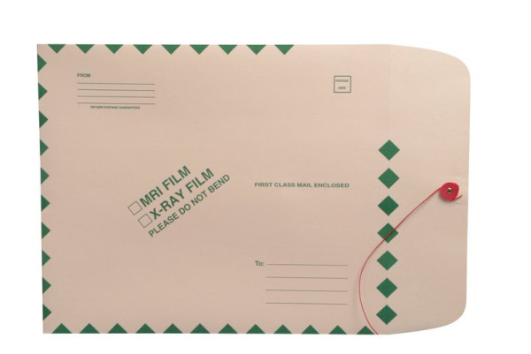 X-Ray Film Mailers, 11 pt Manila, 11" x 13", Green Diamond Border, String and Button Closure (Carton of 50)