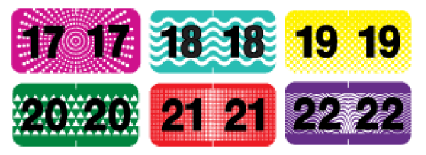 Year Labels - CONTROL-O-FAX CFYM Series Laminated 500/roll 2018 2019 2020 2021 2022